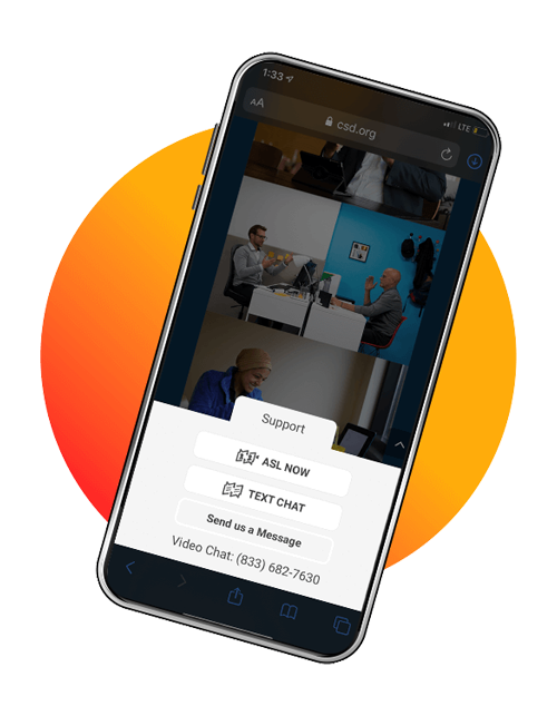 When you see the CSD Access icon, you can count on exceptional customer support in American Sign Language. Contacting a fluent ASL customer support representative is a breeze. Just click the icon to connect with ASL Now or call through videophone (VP).